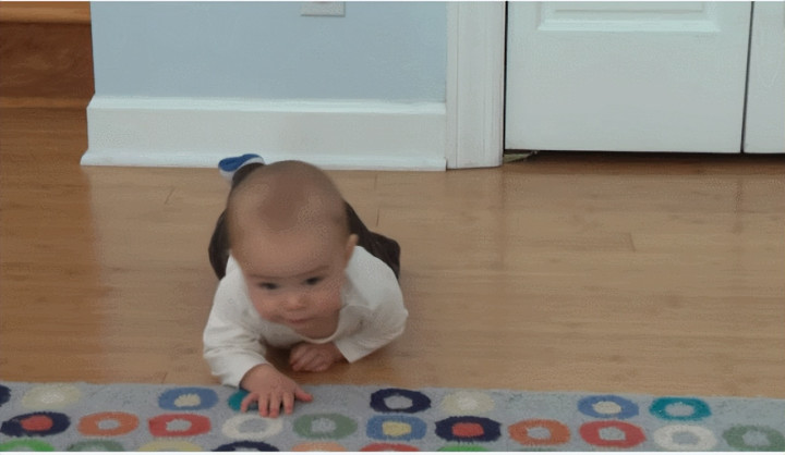但是,他的肢体协调性还是不太好,很难完成整个翻身动作。